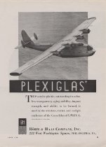 Black & white Plexiglas ad from Rohm & Haas. Issued in June 1938. Image shows a plane flying over the sea. Two pencil marks "12" and "140" located at the bottom of the page.