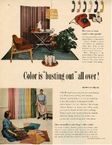 An article entitled "Color is "busting out" all over!" by Florence Byerly on page 42-45. Pencil mark "Better Homes & Gardens, July 1955 pgs. 42-45" at left side of bottom on page 46.
