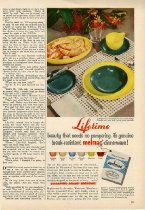Color printed ad for Lifetime on page 141. Image on the top right of the page featuring green and yellow bowls and plates. The other side, "Good Hosekeeping, June 1954. pg 141" is written in pencil at the bottom